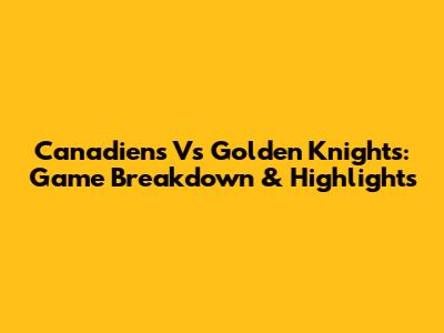 Canadiens Vs Golden Knights: Game Breakdown & Highlights