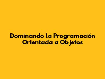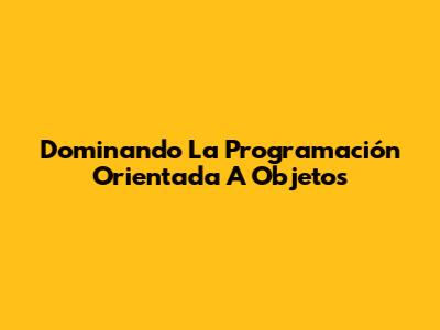 Dominando La Programación Orientada A Objetos
