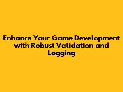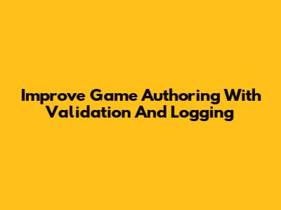 Improve Game Authoring With Validation And Logging