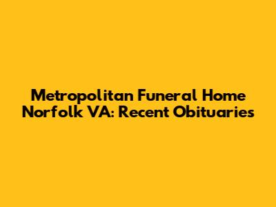 Metropolitan Funeral Home Norfolk VA: Recent Obituaries