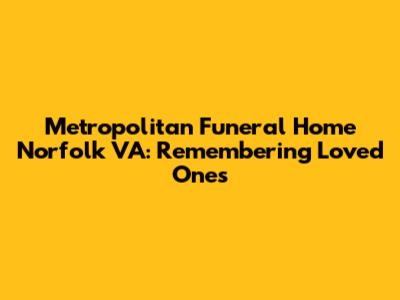 Losing a loved one is never easy, and during such times, finding the right resources and information can provide solace and support. If you're searching for Metropolitan Funeral Home Norfolk VA obituaries, you've come to the right place. This article will guide you through accessing obituaries, understanding funeral arrangements, and navigating the grieving process. We aim to provide a comprehensive resource to help you honor and remember those who have passed.