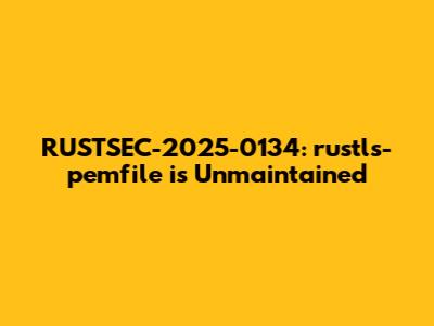 The rustls-pemfile crate, version 1.0.4, has been officially marked as unmaintained. The underlying repository has been archived since August 2025, indicating that no further updates or security patches will be provided. Developers who depend on rustls-pemfile are strongly encouraged to migrate to alternative solutions to ensure the continued security and reliability of their applications. The advisory page (https://rustsec.org/advisories/RUSTSEC-2025-0134.html) provides additional details and context regarding this transition.