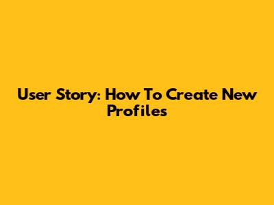 User Story: How To Create New Profiles